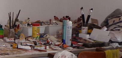 Die kreative Arbeitsweise berücksichtigt das unbewusste und zufällige Gestalten. Formen entstehen aus einem Bauchgefühl heraus, die sich allmählich durch Schichtungen und Überlagerungen verdichten und so zu einer beinahe spirituellen Bildauffassung wachsen.